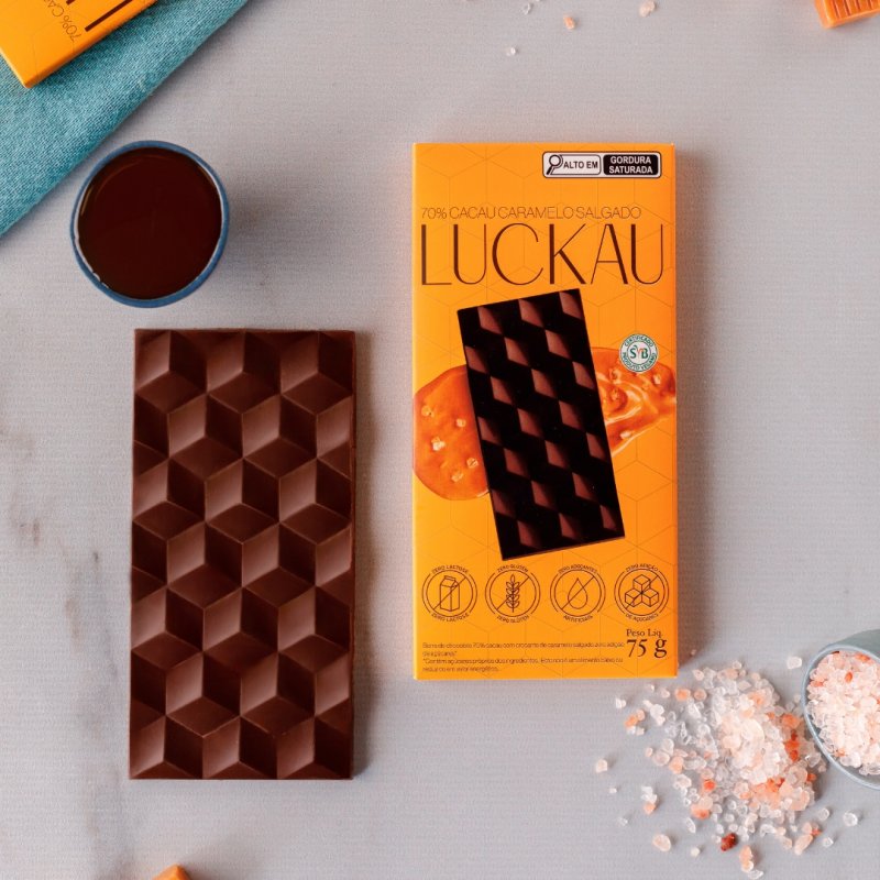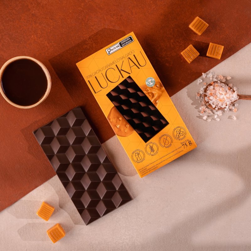Chocolate 70 cacau com caramelo salgado Luckau 75gAvaliar