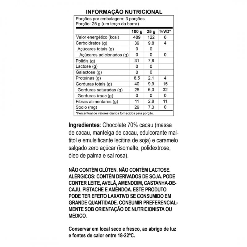 E, para completar, é uma opção zero glúten, zero lactose e zero adição de açúcares. Além disso, a nossa barra 70% Cacau Caramelo Salgado é Vegana, certificada pelo SVB. Saiba mais sobre a certificação: https://svb.org.br/