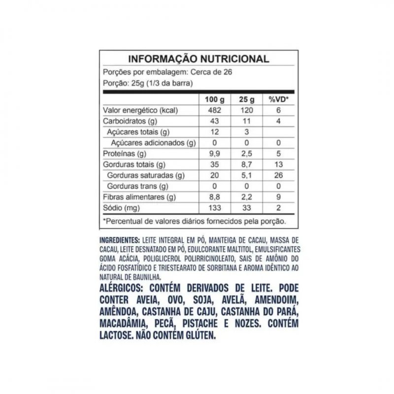 Detalhes: -Zero açúcar; -Sem glúten; -Chocolate ao leite.